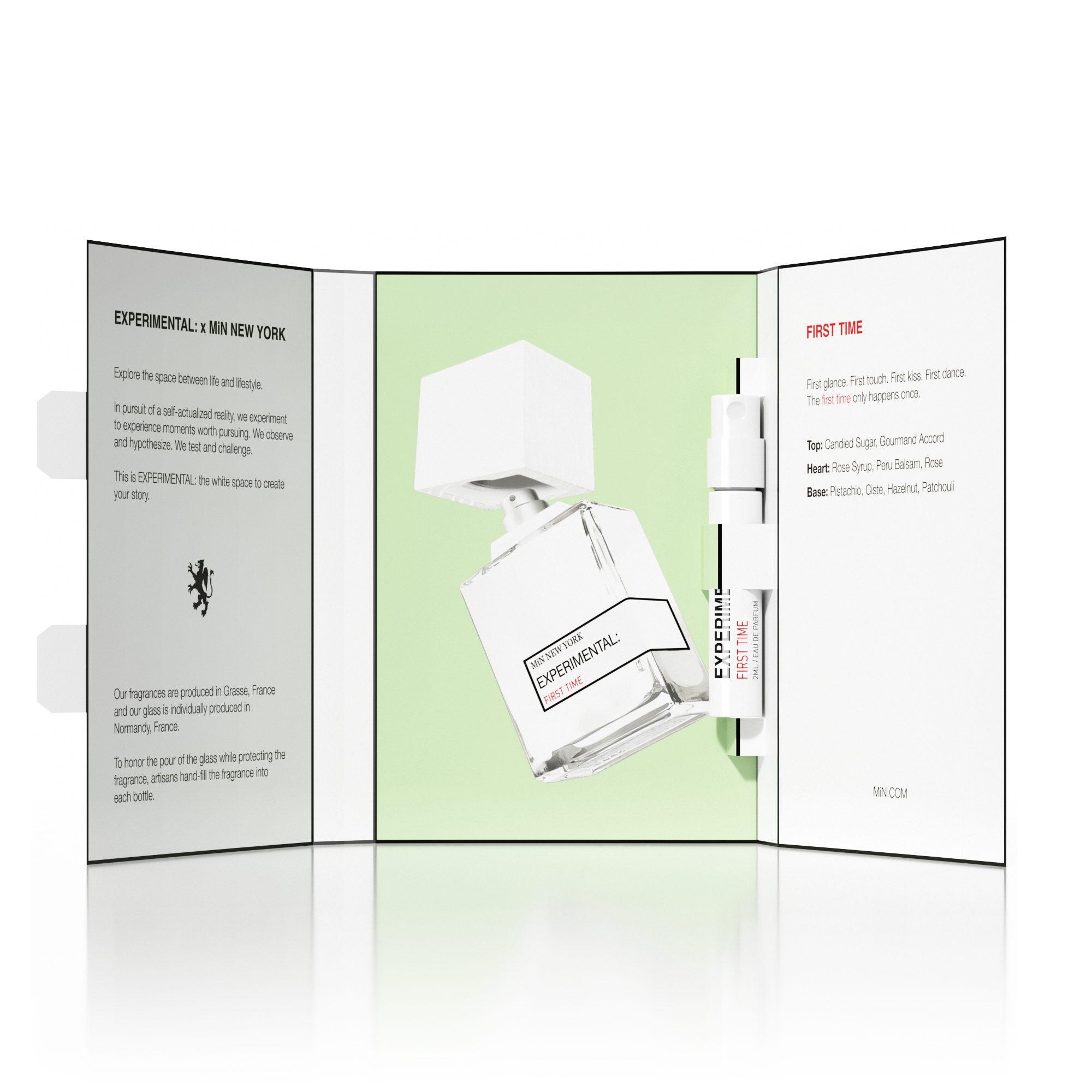 Inspired by the purity of life’s ‘firsts,’ FIRST TIME invites you to relive the fleeting, heart-pounding moments that shape our stories—the first glance that sparks curiosity, the first touch that ignites warmth, the first kiss that seals a memory. Part of MiN NEW YORK’S Experimental Collection, it explores the white space where life and lifestyle converge, encouraging us to hypothesize, test, and create. Picture a soft, candied rose petal kissed by syrup, its sweetness tempered by the gentle warmth of balsam and nuts, evoking the tender anticipation of a new connection. FIRST TIME is a celebration of innocence and possibility, a fragrance that captures the gentle allure of beginnings.